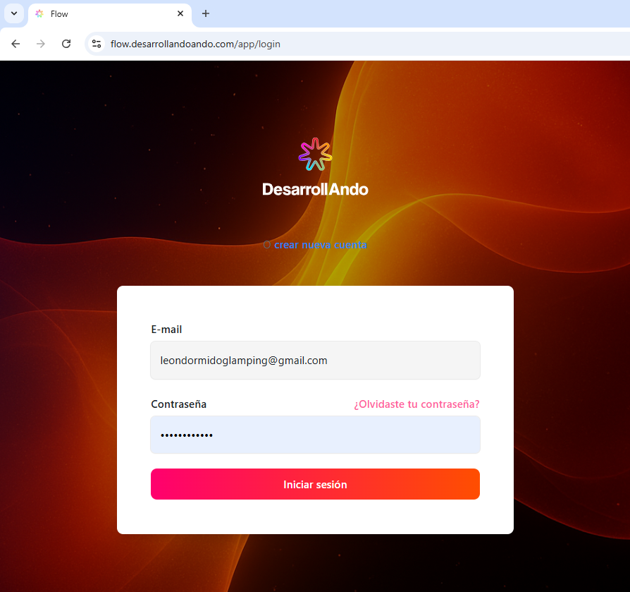 En esta pantalla, hay dos campos que debes diligenciar para poder acceder a la vista principal de Flow: