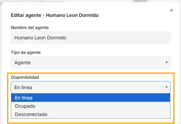 En la opción de Disponibilidad, podrás asignar la disponibilidad con la que siempre aparecerá tu agente: