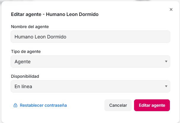- Tipo de agente: puedes asignarle uno de dos roles: Administrador o Agente.