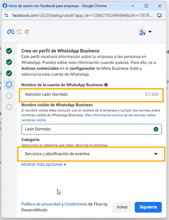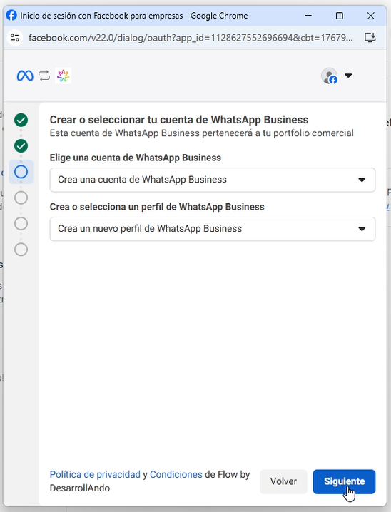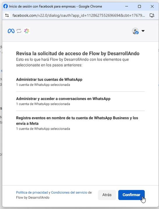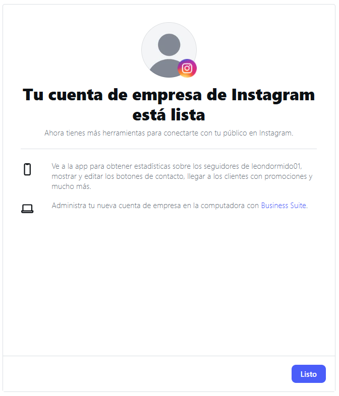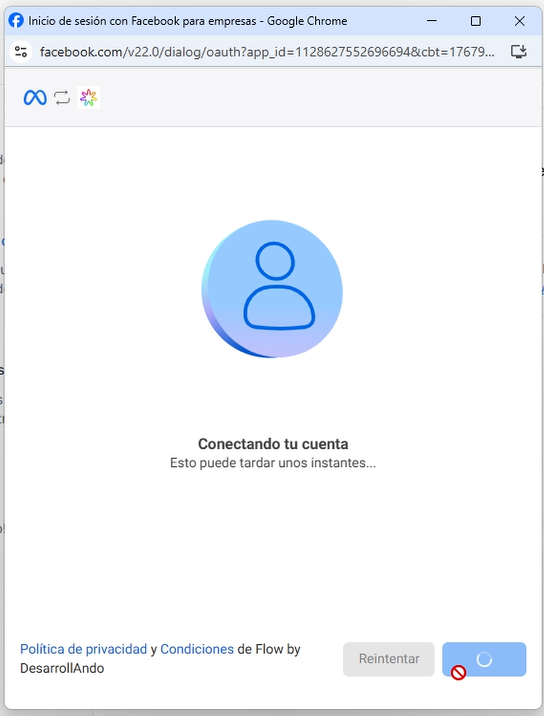 - Por último, veremos la siguiente pantalla mientras Meta completa el proceso: