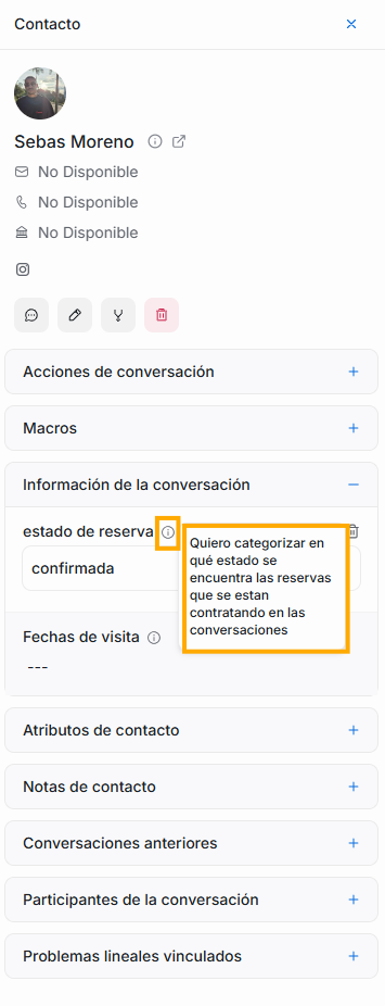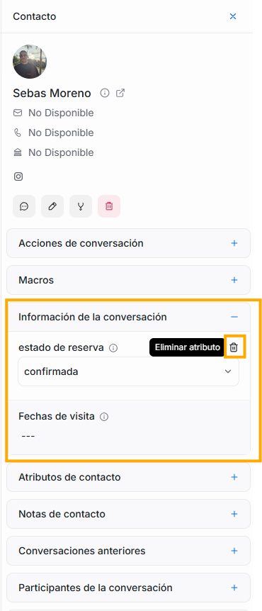 Si quieres quitar un atributo que ya asignaste a una conversación, solo debes dar click en el ícono de basura que esta al final del nombre del atributo.