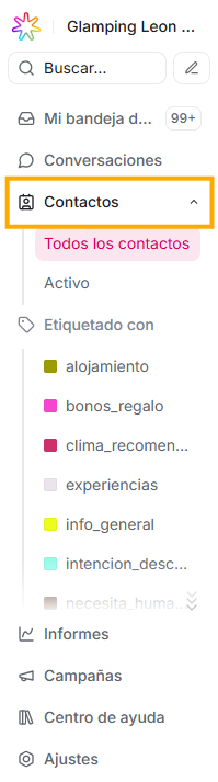 Aquí verás una lista de las conversaciones que ese contacto ha tenido con tu plataforma. Al dar click sobre una de las opciones de la lista, ésta te redireccionará a la conversación