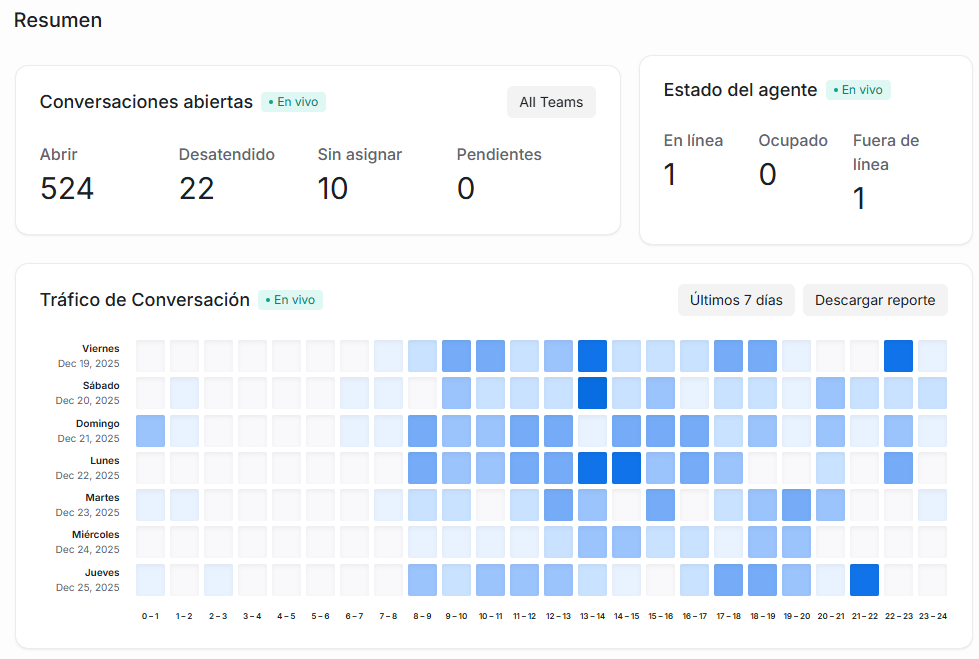 Esta sección es muy importante ya que te permite entender qué está pasando realmente en tu operación de atención, tomar decisiones basadas en datos y mejorar tanto la experiencia del cliente como el desempeño del equipo.