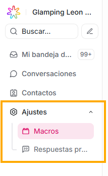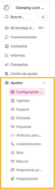 Por la misma razón, aunque ambos roles cuentan con el módulo Ajustes, el administrador tiene más submenús que el agente: