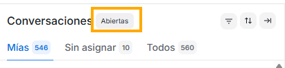 - Mías: Flow permite asignar conversaciones para que sean atendidas exclusivamente por un agente. Así entonces, si eres un agente, al iniciar sesión, si seleccionas este encabezado, verás la lista de las conversaciones que han sido asignadas para ser atendidas por ti.