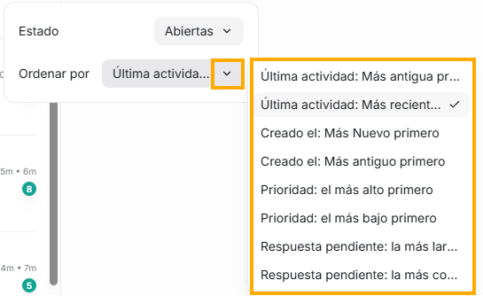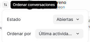 2. Segundo ícono: Ordenar conversaciones - FILTRO PRINCIPAL